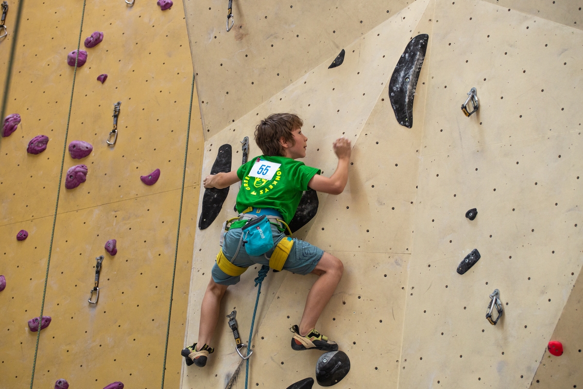 Jen tak pro pořádek, obtížnost pro kategorii U10 byla 7b, pro U12 7c+ a pro U14 8a. Vzhledem k postupnému gradování obtížnosti to však neznamenalo, že by cesta vzhůru nad druhou expresku byla zapovězena pro většinu finalistů. Podařilo se, že z celkem 52 finalistů bylo pouze 7 shodných výsledků, za což opět můžeme poděkovat ostravsko-pražskému stavěčskému týmu.