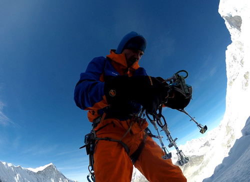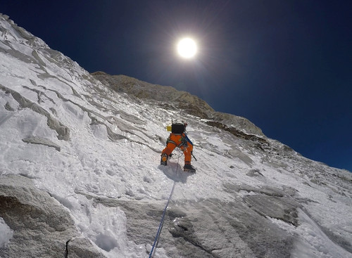 Jen pár doplnění. Moro a spol. udělali variantu naší cesty z r.1994 ve spodní části.Celou tuto část fixovali.Délku cesty napsali 2500m s tím, že posledních 1350m alpsky. My jsme psali délku 1400m.Na naší cestu se napojili v místě našeho druhého bivaku(vykopaná police v ledu na sezení s nohama dolů). První bivak byl pouze ve vývrtkách (každý měl jednu) ve visu. Počasí nám přálo, bylo celkem slušně, zima cca -10 až 15 a každé odpoledne nebylo vidět skoro nic. Třetí bivak už byl super. Z poloviny postavený stan, kde půlka visela dolů. Oblečení té doby-šusťáky. Prezentovali jsme tuto cestu pouze v American Himal.Journal a vyšlo to v roce 1996. Z naší linie Moro ještě odbočil a vytraverzoval na hřeben dříve, než my a tím přišel o krásnou délku v mixech, kterou jsem lezl "pouze" 3,5 hodiny. Obtížnost podle Mora byla V-VI, 90 led. My jsme dali IV, 70 led. Tu jeho obtížnost bych nevylezl.:-) Je to asi trošku o tom, že my jsme nic moc neuměli a bylo nám blbý přehnat hodnocení obtížnosti. Ale bylo to fakt těžký. Celé jsme to následně proslaňovali a spodní část už jsem musel slézt, protože kluci vždy slanili na mých piklech. Váhově jsme si také, jako Mára "polepšili". Já jsem měl -11kg, tedy krásných 59kg. A s Márou půjdeme dneska na pivo a probereme to.Tak to jen že jsme lezli i dříve.