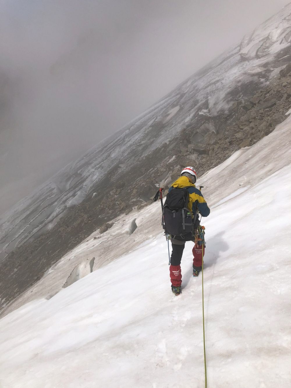 Naše varianta traverzu se mi vůbec nelíbí a nechci tam být ani moc dlouho. Je to místo, kde občas nějaké kamení padá a i my se snažíme dostat se k dalšímu “ridgi” co nejdříve.