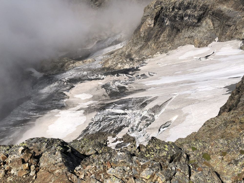 Právě na Willsgrätli začínáme náš lezecký scramble a potkáváme první skupinu s guidem, která se kvůli zdravotním problémům vrací. Jejich průvodce nám říká to, co už víme…. a sice že jsme ztratili hodně času.