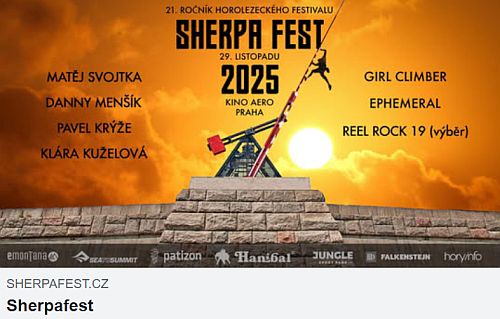 21. ročník horolezeckého festivalu Sherpafest se chystá přespříští sobotu 29. listopadu v pražském kině Aero. Podrobný program a možnost zakoupení vstupenek viz stránky festivalu: