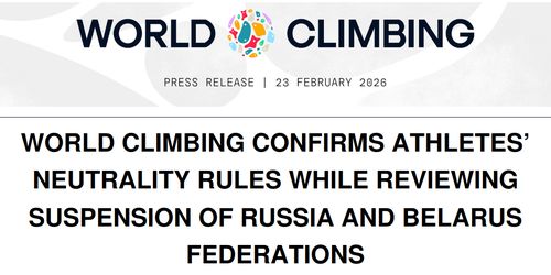Výkonná rada World Climbing (mezinárodní lezecká závodní federace, dříve IFSC) v únoru zrušila pozastavení členství ruské a běloruské federace a umožní jejich sportovcům závodit na mezinárodních závodech v lezení. Obě federace, jejichž suspendace byla původně nařízena v březnu 2022, byly nyní znovu přijaty na základě potvrzujícího dopisu zaslaného příslušným prezidentům, informuje World Climbing.