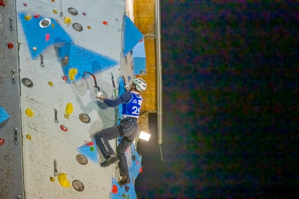 Oliver Hamerský, závodí a předlézá jednu z kvalifikačních mužských cest, kvalifikace MČR 2026