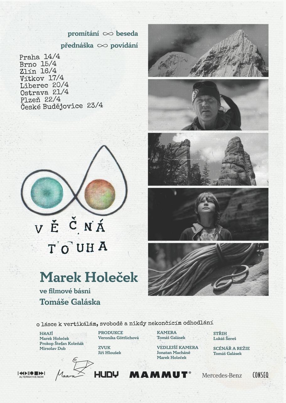 Věčná touha je poetická filmová báseň o Marku Holečkovi, sledující jeho vášeň pro horolezectví a hluboké spojení s horami. Paralelně s jeho poslední expedicí v centrálním Himálaji se vracíme do dětství, kdy poprvé překonal strach a objevil svou životní cestu. Film je vizuální meditací o odvaze, svobodě a nekonečné přitažlivosti hor.