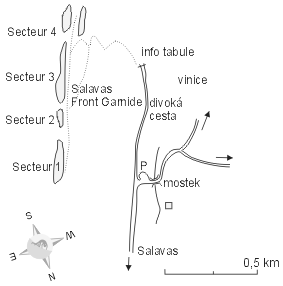 Salavas - Fontgarnide je asi nejvýznamnějším šutrem v okolí městečka Salavas, co do počtu cest, naopak milovníci velkých převisů budou spíš v Les Branches, kde jsou cesty po krápníkových strukturách ve velkých převisech, najdete zde 23 těžkých cest, vedlejší Jeau je stejné svoji velikostí. Také hostí něco málo přes dvacet cest, ale lezení je zde ve francouzském šestém a sedmém stupni. Tam jsem se ale podívat nebyl takže nemohu přesně popsat kvalitu a i foto chybí.