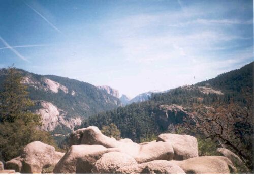 První pohled na El Capa a Half Dome po příjezdu do parku.