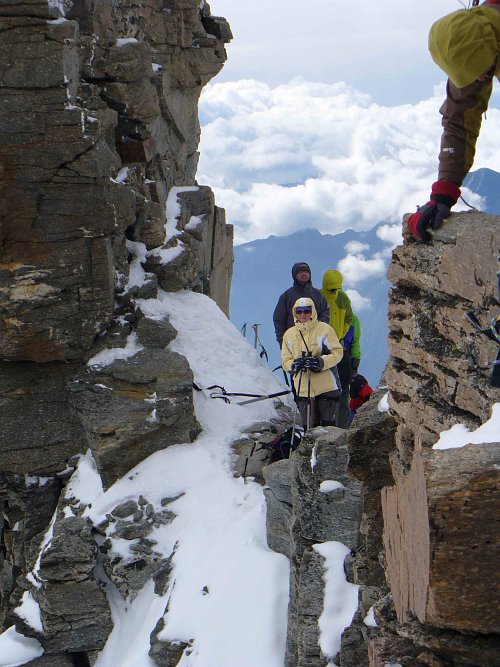 a k bivaku asi 300m nad ni, kde jsme postavili stany a jali se obhlížet terén . Ráno bylo nádherné a my se vydali k vrcholu. Nutno říci, že většina výpravy na vrchol Grand Paradisa (4061m) za zimy a silného větru dorazila, jen já jsem se s 12letou dcerou Evou musel vrátit asi z výšky 3600m, kde ji přepadla krize. Celkově však výstup není náročný a pokud je relativně dobré počasí dá se v pohodě zvládnout.