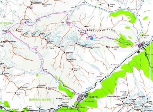 Popisovat podrobně celou trasu by bylo zdlouhavé a vcelku zbytečné. Za zmínku stojí všudypřítomné krávy, volně se pasoucí stádečka koní a ovcí. Nocleh jsme zvolili ve výšce 2900m. V podvečer se přihnala pravidelná bouřka z horka. Ráno opět azuro a my stoupáme k prvnímu sedlu Irikchat (3667m). Vyběhneme na bezejmennou kótu 3770m a obdivujeme východní vrchol Elbrusu a plató Jikaugenkez, které máme v plánu traverzovat.