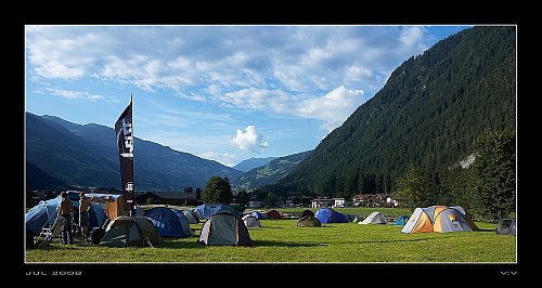 Jelikož celá akce začínala již ve středu odpoledne, rozhodli jsme se neváhat a do Zillertalu, jmenovitě do městečka Mayrhofen, které bylo základnou RocTripu, jsme dorazili ve čtvrtek ráno. Pro tuto akci byla vyčleněna tzv. Wooden village, která byla uzpůsobena právě pro následující dny – kempík se sociálkami, velké kryté promítací plátno s posezením a stánek s novinkami sponzorů.
