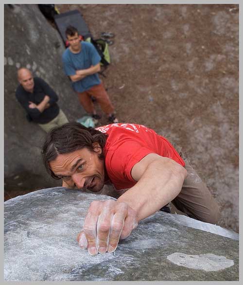 Účastníci Petrohradského Padání v roce 2005 určitě vzpomenou na úžasný výkon Richarda Nyékiho, který jako první přelezl bonusový a odvážný boulder Kometa za 7C. Velkou motivací mu možná byla flaška "balantýnky", která za odměnu čekala na vrcholku balvanu, ale protože vím, že Ríša alkoholu moc neholduje, byla to spíš krásná vzdušná linie, která ho lákala. Nebo se pletu? Určitě ne. Stačí se na tohoto věčně usměvavého "Slováčiska" jen podívat a je vám jasné, že lezení není jen o číslech a výkonech, ale hlavně o radosti, přírodě a dobrodružství....