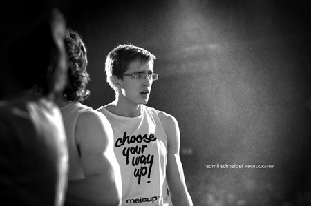 Sám. Když už s někým, tak nejvíc se snažím lézt s bratry Stráníky a Sukem. Jsou menší než já a mají odlišný styl, takže pro trénink úplný ideál!
