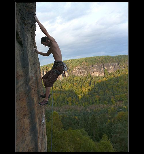 Styl BM (bez magnézia a podobných sraček) není špatný, jen to chce někdy víc úsilí a taky pokory. Ne vždy jsou podmínky takové, jaké by si lezec přál."