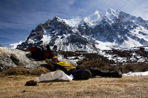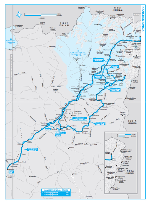 Vzhůru do hor!? Ty jsou už všude kolem Taplejungu! Ale ty porostlé džunglí nám však nestačí. Než zahlédnete první zasněžené kopce masívu Kanchenjungy, budete pomalu týden na cestě! A samotná Kanchenjunga stále nikde. Klasický trek do tábora na dohled severní stěny Kanchenjungy (Průvodci píší pod, ale „pod“ je opravdu ještě hodně daleko.) s následným přechodem několika sedel z údolí řek Tamor a Ghunsa Khola do údolí řeky Simbuwa Khola s cestou do tábora pod jižní stěnou je bezmála čtyřtýdenní podnik, který se svou náročností řadí k fyzicky obtížnějším s opravdu základním zázemím v podobě několika málo lodgií nebo se spaním u místních. S žádnými hody tady nepočítejte. Proto na něm potkáte většinou turisty, kteří již někde v Himálajích byli. A všichni až na nepatrné výjimky v závěsu průvodce a nosičů. Lezce prahnoucí po nějakém vrcholku v oblasti tento dlouhý nepohodlný přístup často odradí a svých snů v této oblasti se předčasně vzdávají. Movitější to řeší dopravou vrtulníkem.