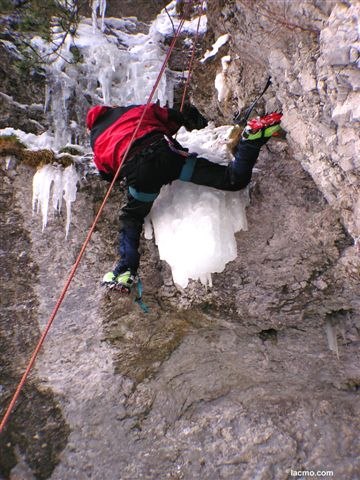 Byli jsme celkem 3 já Rákos a Houba. Většinu toho tahal Rákos protože já si zapomněl mačky, takže jsem si je musel pořád půjčovat. Rákos tam vylezl takovou tu z 50% drytoolingovou záležitost byl to převis jako prase, vymastil ho celkem rychle, ale věřím, že mu lepilo.