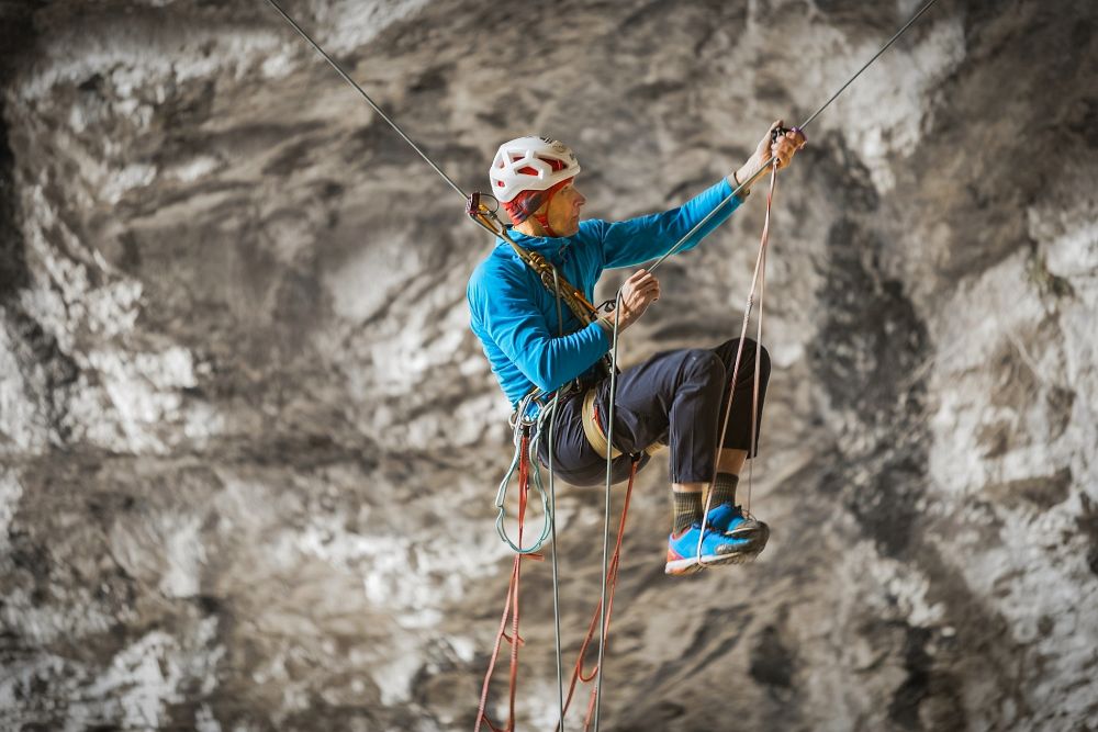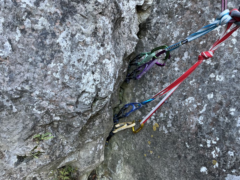 Celý proces v Gekónovi jsem, byť nezáměrně, započal sám. Tak mi přišlo logické v něm sám pokračovat. Na podzim 2023 jsem tedy začal zkoušet, zda by to (pro mě) vůbec technicky šlo na LRS. Vyzkoušel jsem několik systémů a lan. U jednoho nejmenovaného jistítka jsem dokonce při pádu urval oplet lana a zůstal na jádrech o hodně níže, než jsem předpokládal…