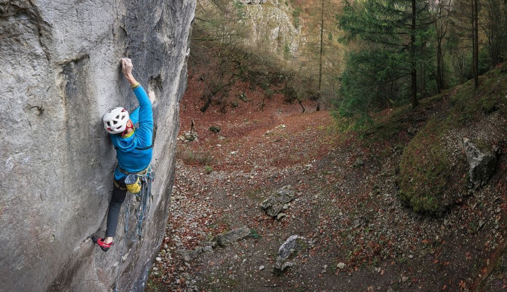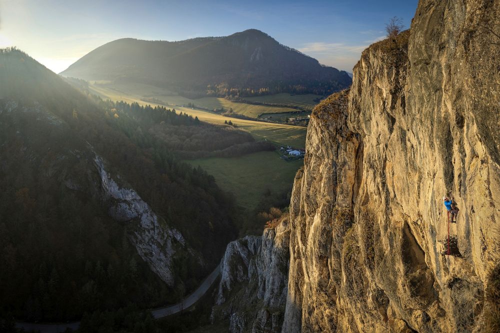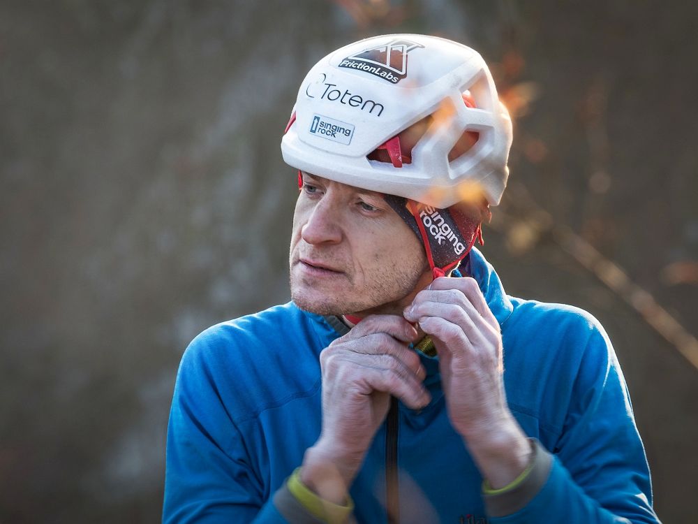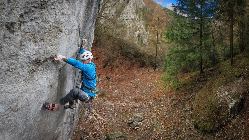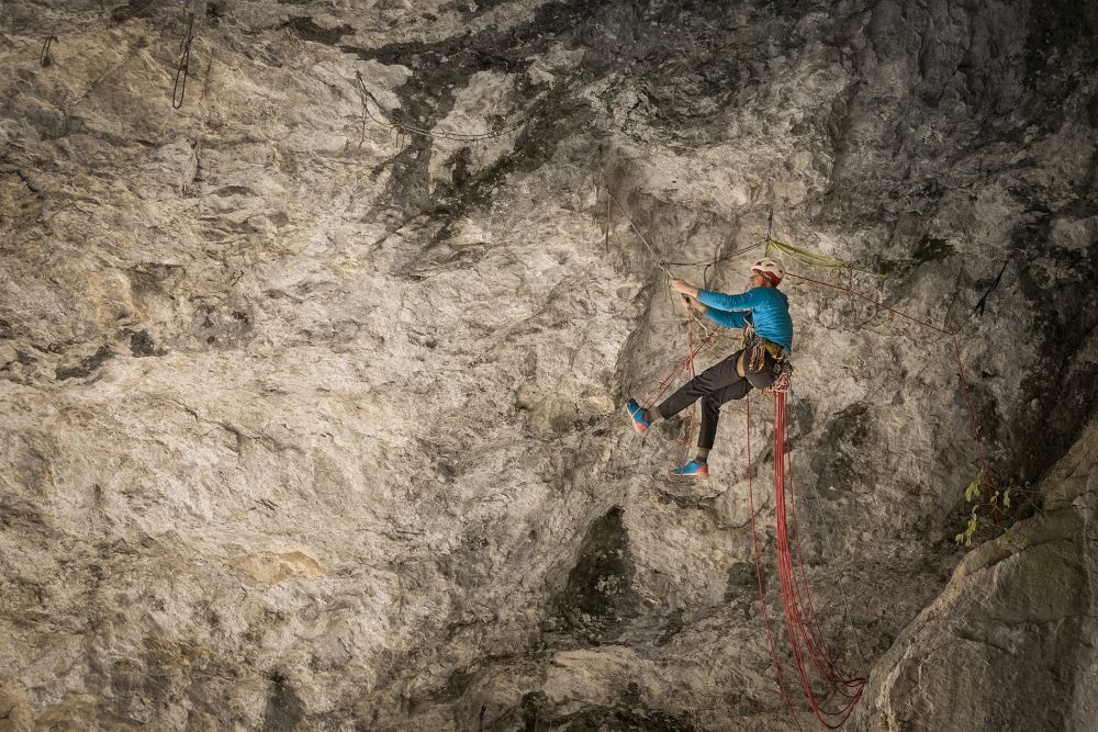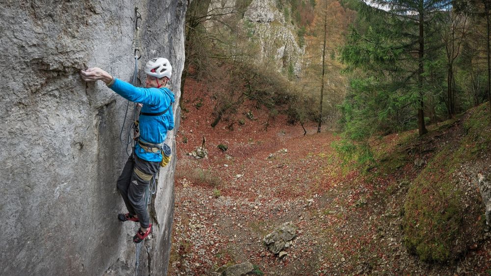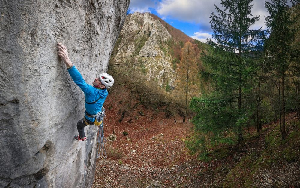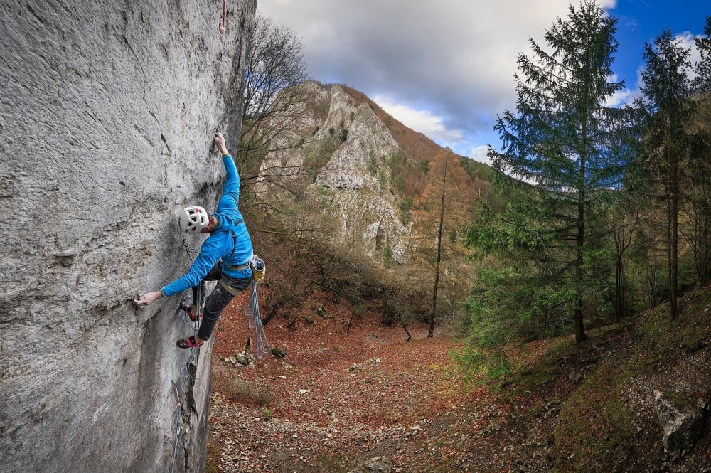 Střih. První skály po úrazu byl průlez Kežmaráku na druhém, ale jen díky nástupu pomocí e-biku. Při druhé návštěvě jsem se již s Martinem střídal v tahání délek (nejtěžší jsme vylezli oba) a při třetí jsem si dal psychický test a vylezl Superdiretisimu jištěným sólem (viz předchozí článek www.singingrock.cz/lumir-fajkos-superdiretissima-rope-solo). Hlava tedy byla připravená, ale tělo ještě ne, a hrozilo, že ty podzimní podmínky opět nestihnu. Mentálně to pak bylo náročné ze třech důvodů. První, že pata/kotník byly ještě citlivé a odskoky dost nepříjemné (fyzicky i psychicky). Druhým bylo to, že fyzicky jsem na to měl už i s rezervou, ale při sólo jištění to x-krát skončí na seknutí lana v jistítku nebo backupovém uzlu ve špatném místě atd. atd. – tzn. že to nezáleželo jen na mě. A třetí nenápadný důvod byl ten, že se jednalo o překonání mé nejvyšší dosažené klasifikace. Vědomě mě to sice nebrzdilo, ale kdo ví, jak velkou roli to v kombinaci s předchozími důvody hrálo podvědomě.
