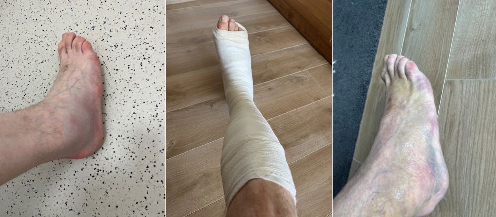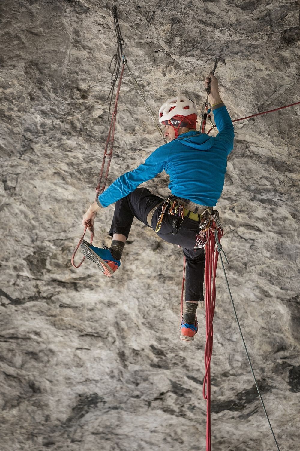 Zpátky k lezení. Loni na podzim jsem kvůli expedici v Pákistánu a z ní přivezeném střevním dárečku, ale i kvůli práci a podobným „dospěláckým“ důvodům, neměl moc času cestu vylézt, resp. výkonnost na přelez byla, ale počasí už ne. Takže kalendář jsem otočil podruhé. Na začátku dubna jsem byl v dobré formě a LRS systém jsem měl konečně docela dobře vyladěný. Byla ale až moc velká zima na malé chyty. Dostal jsem se do high pointu, kde jsem při cvičném kontrolovaném odskoku měl vyzkoušené, že pád může být delší, ale ne nebezpečný. Nicméně ve dvouprstovce jsem vůbec necítil zmrzlé/odkrvené prsty a vypadnul jsem. Více od stěny než při testu. Letěl jsem do oblouku a přibilo mě to do stěny. Slanil jsem a s bolestí na připraveném druhém laně vyšplhal nahoru vyčistit materiál. Dobelhal jsem k autu, a ještě dojel domů. Zlomená pata na více kusů, ale alespoň tak, že se to obešlo bez šroubů, resp. operace. Nechodící sádra na měsíc, a další s francouzskými holemi. Vzpomněl jsem si samozřejmě na Dave McLeoda, který si také zranil kotník při dlouhém pádu v Rhapsody. Dlouhodobý projekt, který poté vylezl…