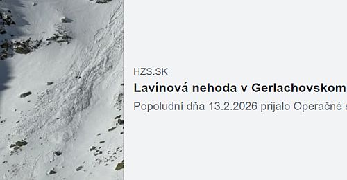 Českého horolezce včera v oblasti masívu Gerlachovského štítu ve Vysokých Tatrách smetla lavina, na místě zemřel. Informují o tom obecná média a slovenská horská služba. Podle ní lavina ve směru Gerlachovského kotle smetla 32letého horolezce české národnosti, který spolu se svým lezeckým partnerem vylezl Krčmárovým žlabem.