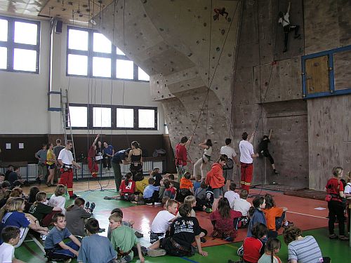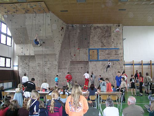 Dojem: Asi 8 metrů vysoká stěna po jedné straně tělocvičny s kolmými i převislými profily. Končí menším stropem. V převisech jsou poměrně těžké výstupy. V kolmém je lehčí lezení. Pořádají se zde různé mládežnické závody v lezení.