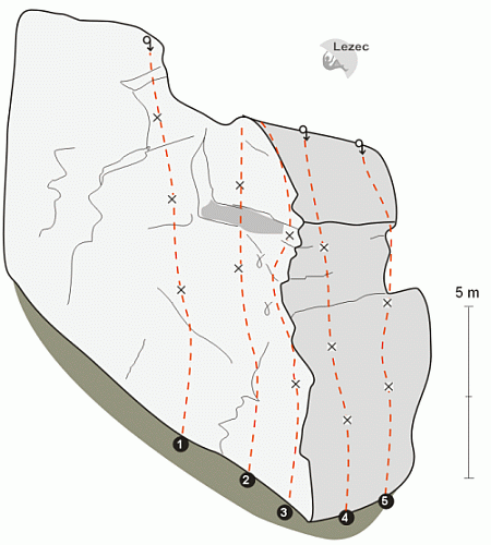 První dva sektory Andrejka a Stěna Lajdáků jsou hned u cesty, stejně jako poslední stěna před chatkami - Trucovna. Ostatní sektory leží mezi Stěnou Lajdáků a Trucovnou a jsou výše ve svahu. Cesty v jednotlivých sektorech jsou popsány zleva doprava.